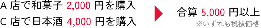 単一の店舗内での販売のみ。 他店との合算はできない。 |